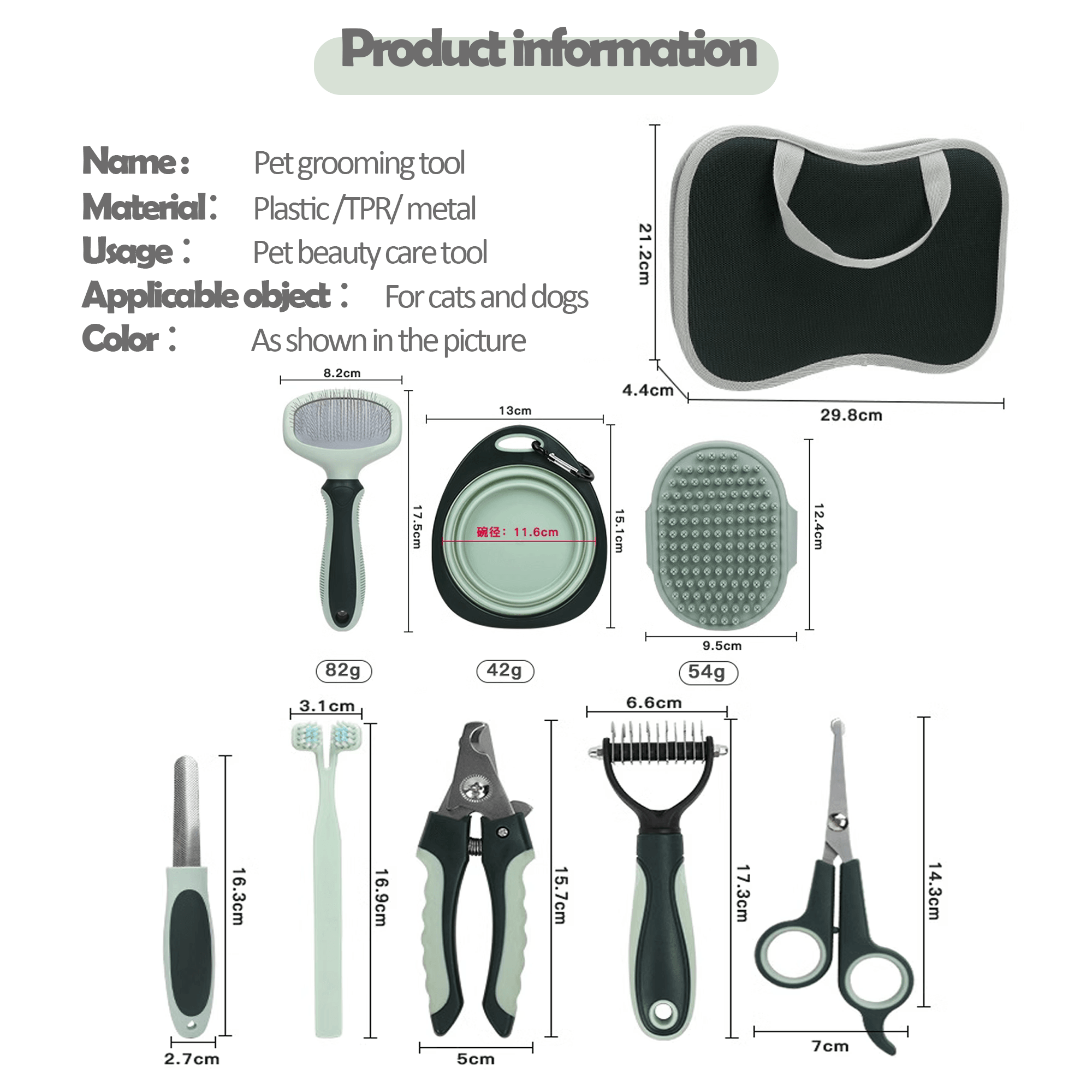 8 PCS Cat Dog Bath Grooming Kits Scrubber for Bath & Massage | Dog Washing Gloves | Pet Nail Clipper and File | Dematting Brush Comb for Dogs Cats | A Complete Pet Grooming Kit